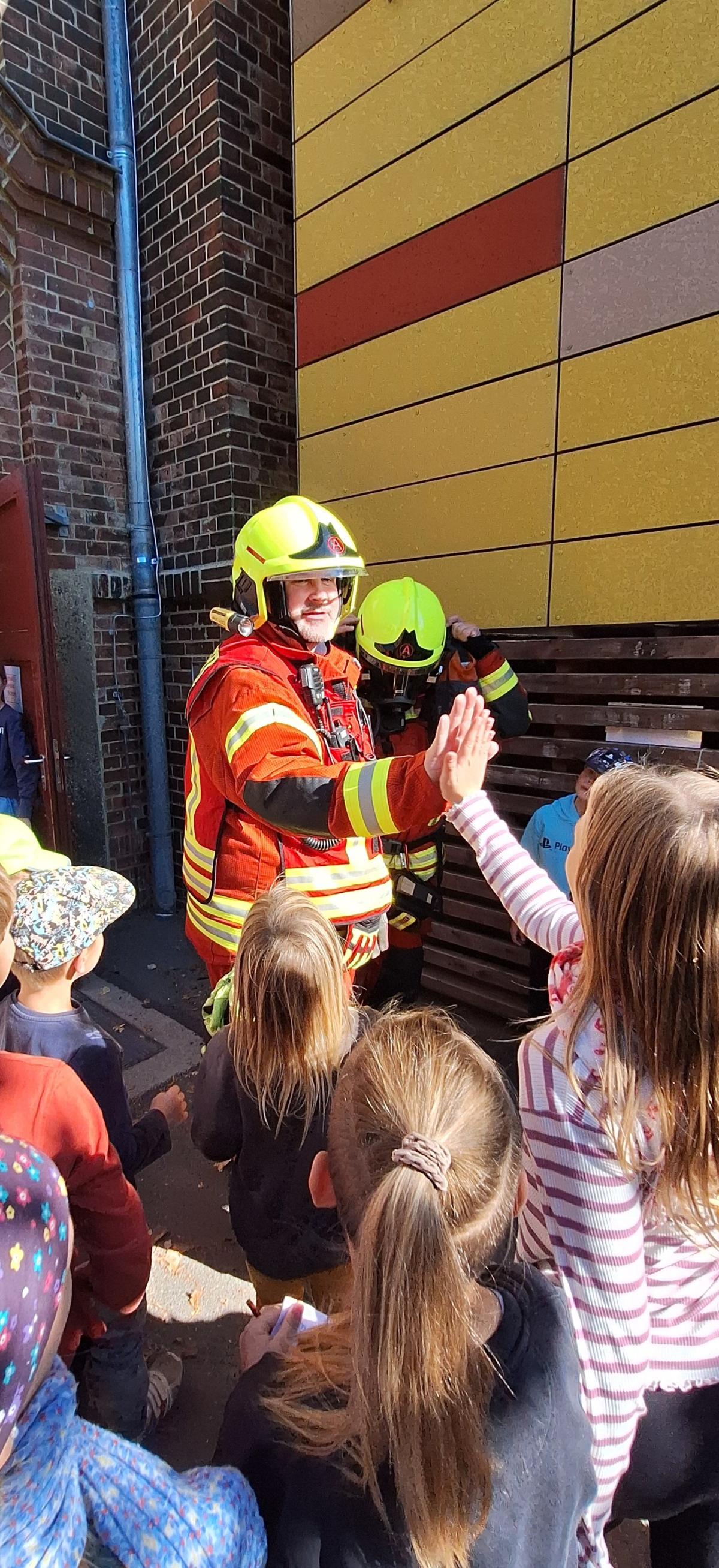Die Feuerwehr rückte aus und führte einen großen Übungsalarm durch. Natürlich konnten alle Schulkinder, Pädagogen, Hausmeister… gerettet werden.